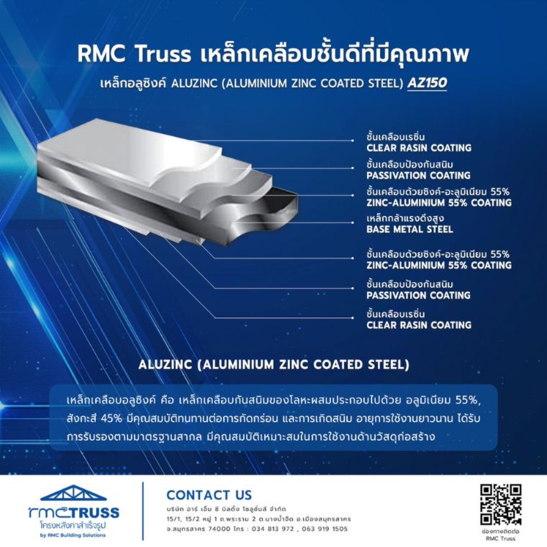 เหล็กอลูซิงค์ ALUZINC (ALUMINIUM ZINC COATED STEEL) #เหล็กอลูซิงค์ #AZ150 คือ เหล็กเคลือบกันสนิมของโลหะผสมประกอบไปด้วย อลูมิเนียม 55% , สังกะสี 45% มีคุณสมบัติทนทานต่อการกัดกร่อน และการเกิดสนิม อายุการใช้งานยาวนาน ได้รับการรับรองตามมาตรฐานสากลมีคุณสมบัติเหมาะสมในการใช้งานด้านวัสดุก่อสร้าง รับประกันคุณภาพวัสดุ 15 ปี