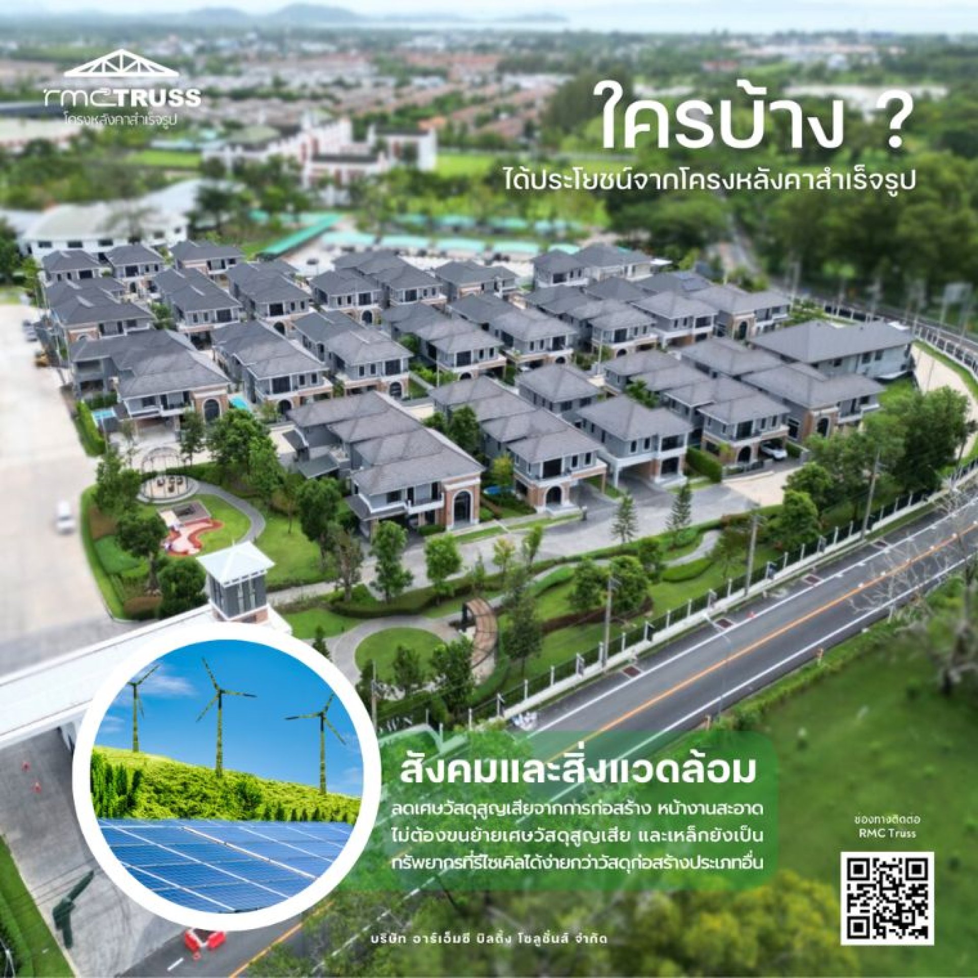 RMCTruss ผู้เชี่ยวชาญด้านโครงหลังคาสำเร็จรูป ที่ได้รับการออกแบบเพื่อป้องกันอันตรายจากสนิม ติดตั้งสะดวก ด้วยเหล็กอลูซิงค์ #AZ150 ตอบโจทย์ ด้านสังคมและสิ่งแวดล้อมของโครงการต่างๆ เนื่องจากโครงหลังคาสำเร็จรูปช่วยลดเศษวัสดุสูญเสียจากการก่อสร้าง หน้างานสะอาด ปราศจากมลพิษจากการตัด หรือ เชื่อมเหล็ก ไม่ต้องขนย้ายเศษวัสดุสูญเสีย และเหล็กยังเป็นทรัพยากรที่รีไซเคิลได้ง่ายกว่าวัสดุก่อสร้างประเภทอื่นอีกด้วย