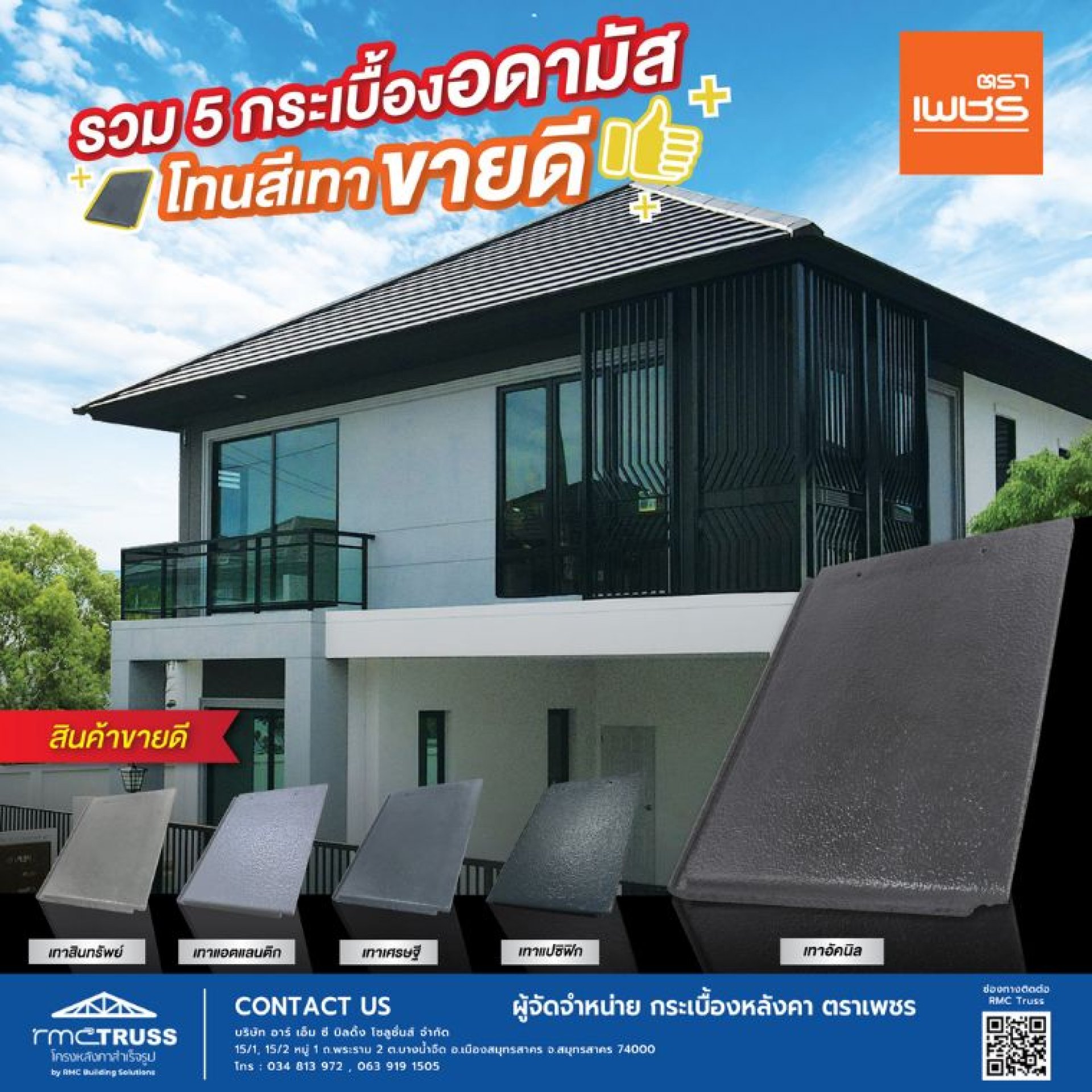 RMC Truss จัดจำหน่าย กระเบื้องหลังคาอดามัส ตราเพชร ที่โดดเด่นทุกมุมมอง มาพร้อมกับสีสันสวยงาม ทั้ง 5 สี ทนทานทุกสภาวะอากาศ คุ้มค่า คุ้มราคา สีสวยติดทนนาน