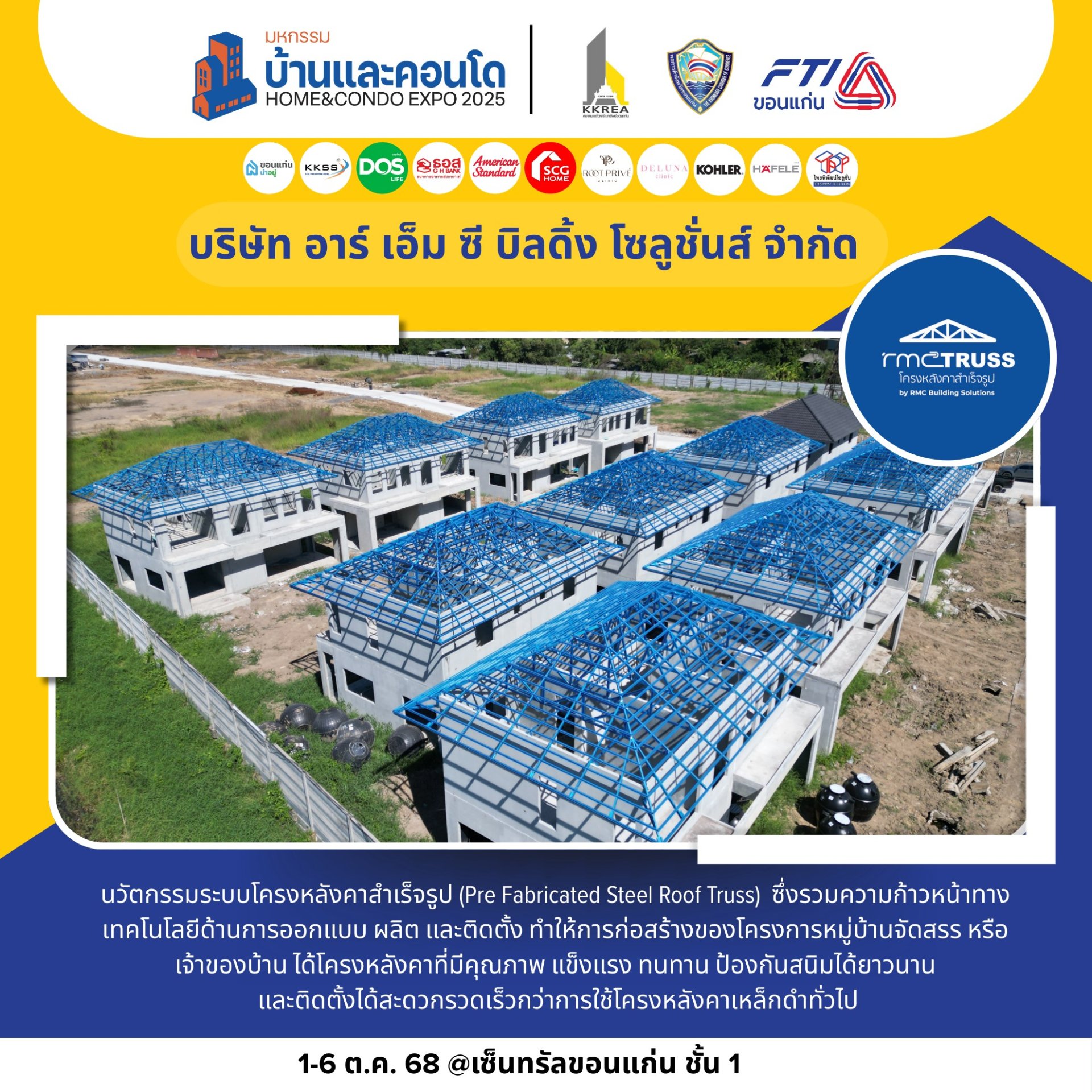 พบกับนวัตกรรมโครงหลังคาสำเร็จรูป RMC Truss ในงานมหกรรมบ้านและคอนโด 2025 (HOME & CONDO EXPO 2025) 1-6 ต.ค. 68 @เซ็นทรัลขอนแก่น ชั้น 1